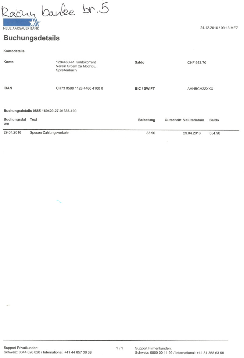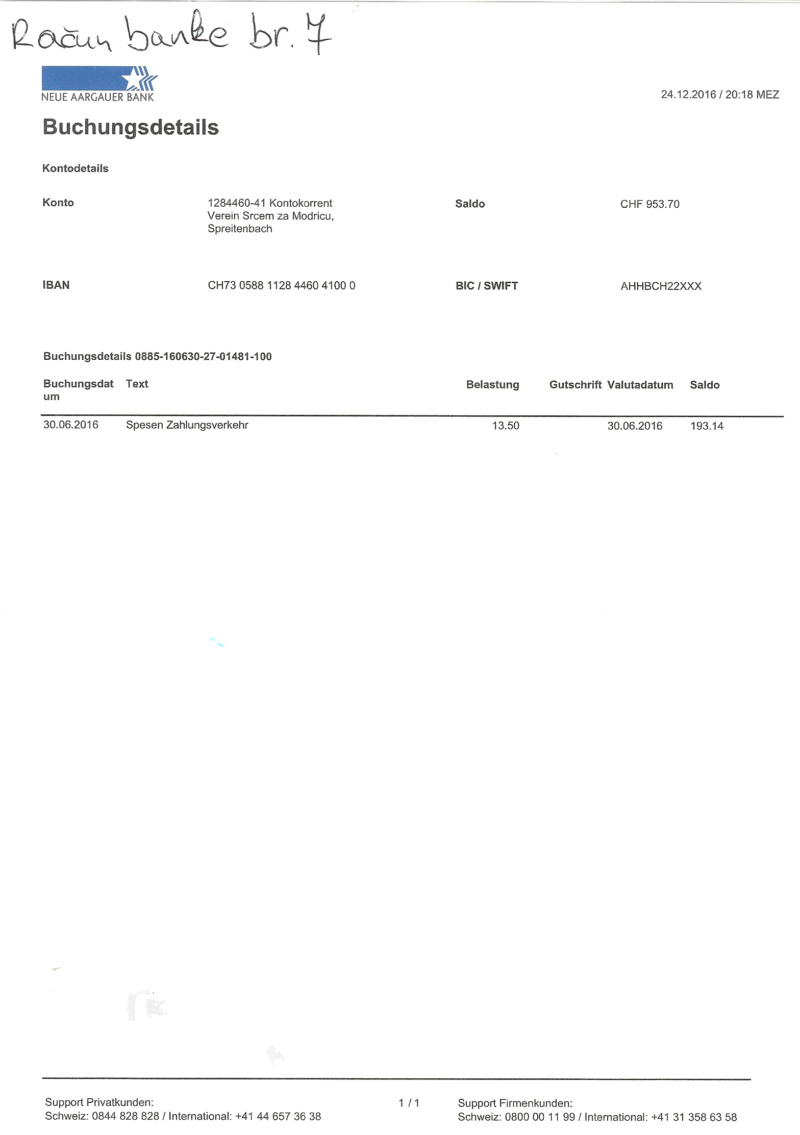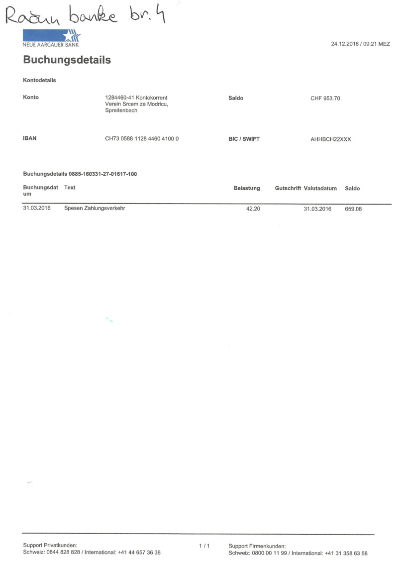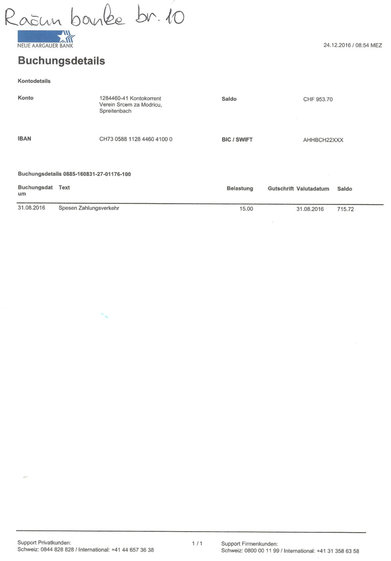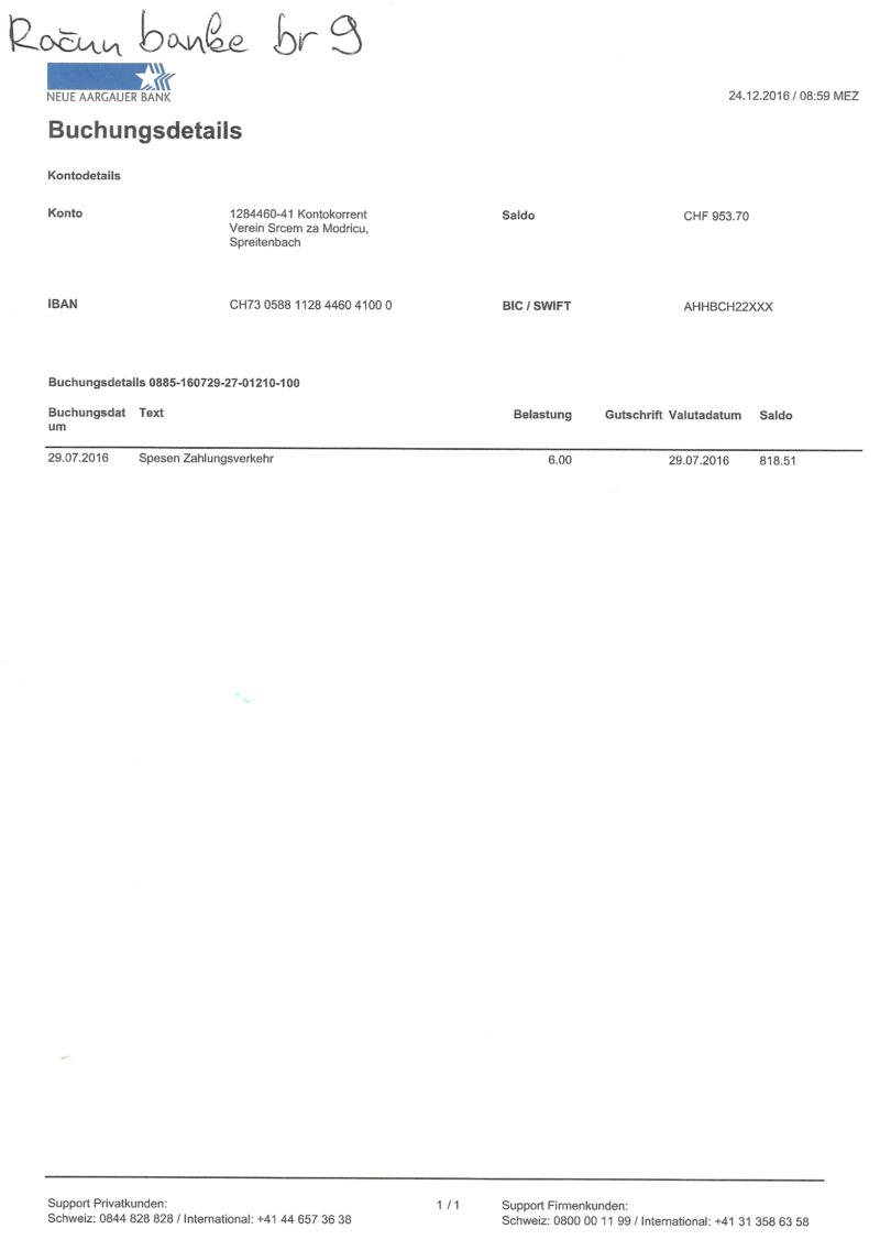 Skenirane slike svih računa i izvještaja banke prilažemo u nastavku.