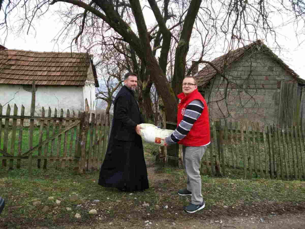 SVEŠTENIK ŽELJKO MATIĆ I POTPREDSJEDNIK HO SZM MITAR KRŠIĆ U HUMANITARNOJ AKCIJI